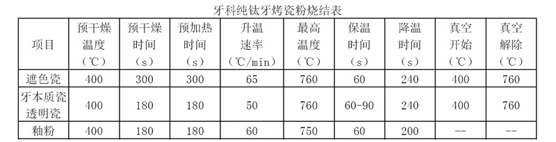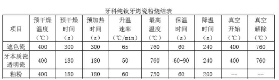 OP按燒結(jié)參數(shù)燒結(jié),溫度可以略高但不可偏低,烤瓷燒結(jié)冷卻的時(shí)候注意設(shè)置一下冷卻溫度,否則正常的開蓋速度會(huì)讓純鈦烤瓷因?yàn)榇傻臏囟妊杆俳禍兀冣佒Ъ軣醾鲗?dǎo)比較慢導(dǎo)致蓄熱而產(chǎn)生裂瓷。同時(shí)因?yàn)榧冣伒臒醾鲗?dǎo)低的原因,預(yù)熱溫度一般也會(huì)設(shè)置得比較低。純鈦是低熱傳導(dǎo)物質(zhì),所以純鈦的烤瓷程序的升溫速率一般都會(huì)設(shè)置得較低以獲得金瓷溫度的同步。