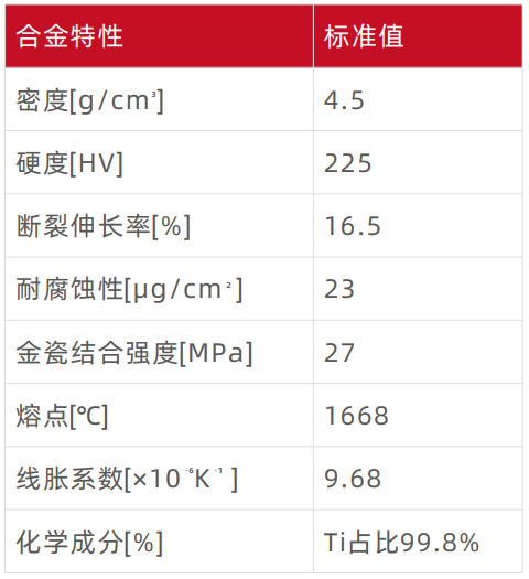 純鈦密度小,約為黃金的1/4;鈷鉻合金的1/2);